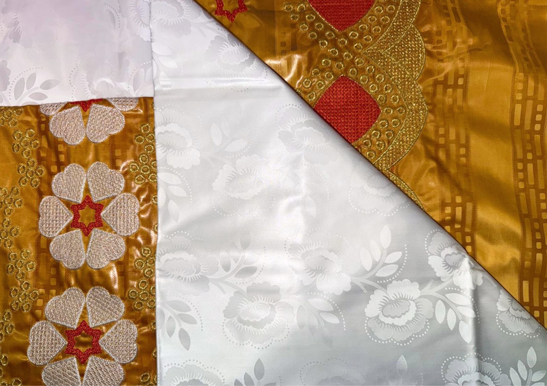 2 meters of Embroidered fabric and 2 meters of Bazin Getzner fabric